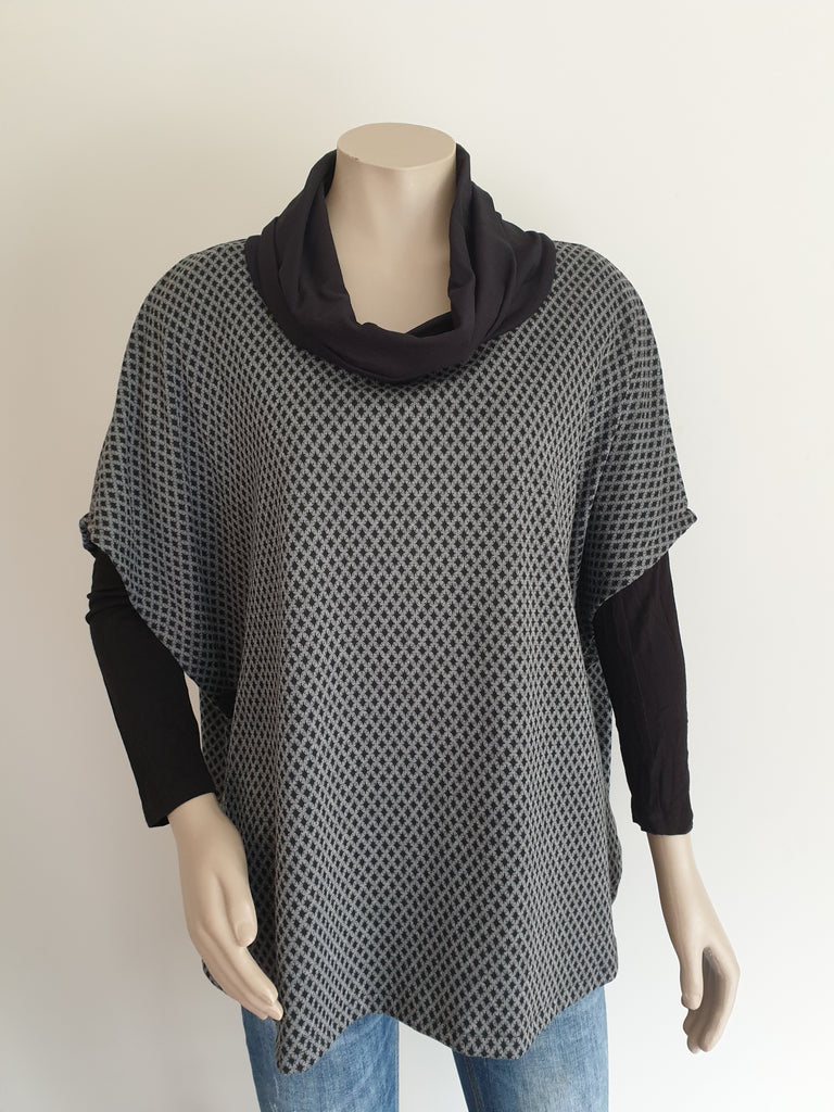 Textured Merino Cowl Drop Neck Poncho