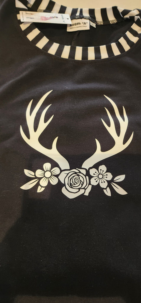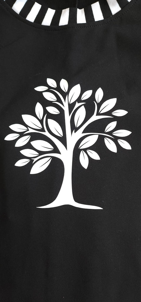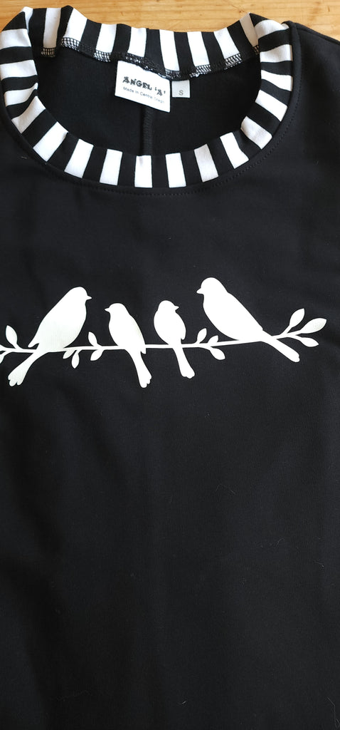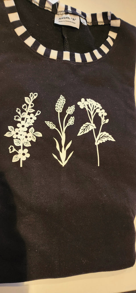 These tops are scooped longer at the back and are Black French Terry fabric with cotton spandex stripe.