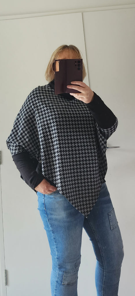 100% Merino Charcoal Diamond Cut Out Poncho With Sleeve