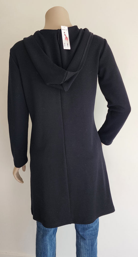 Long Ponte Merino Hooded Cardi - Black
