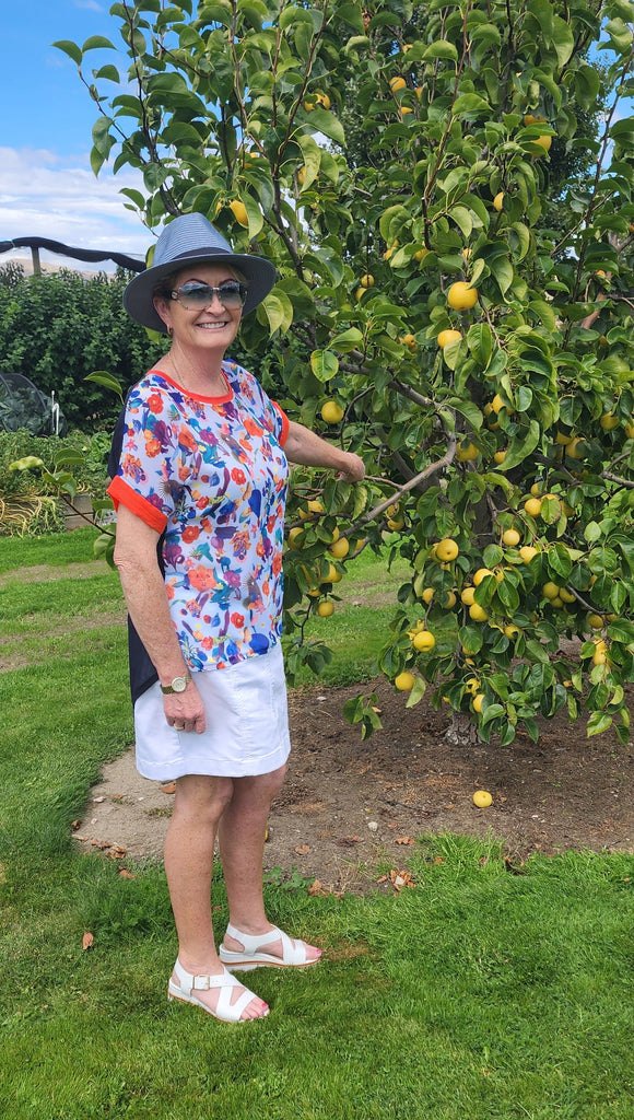Navy Blue Floral Print Top