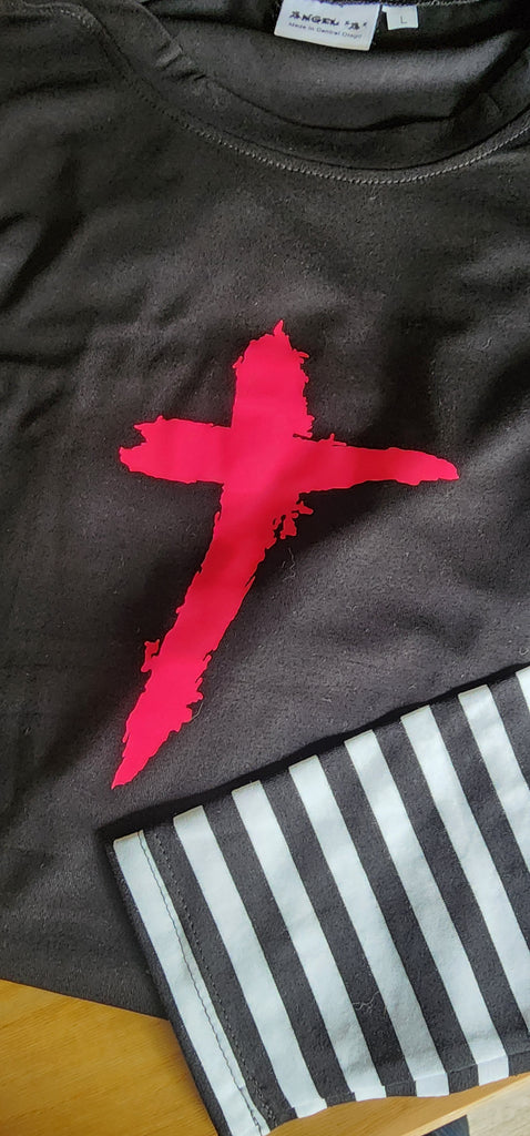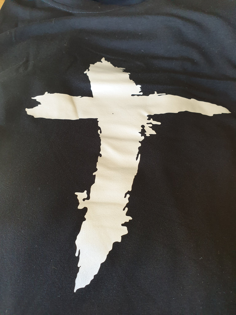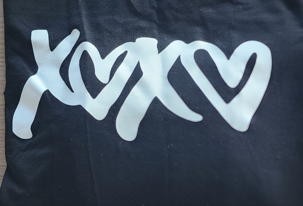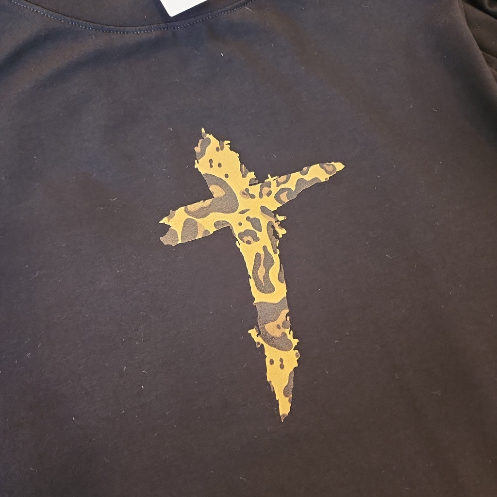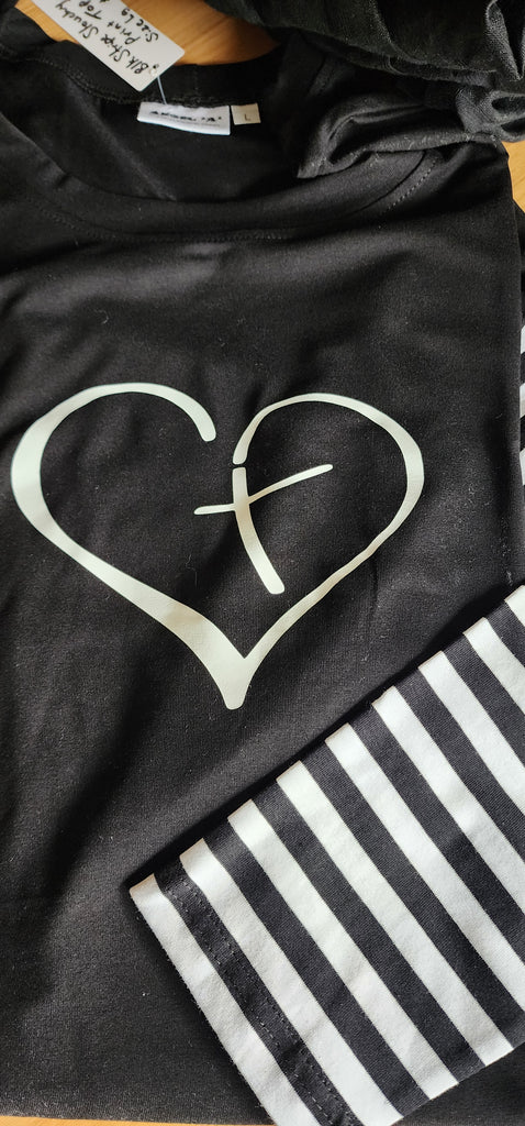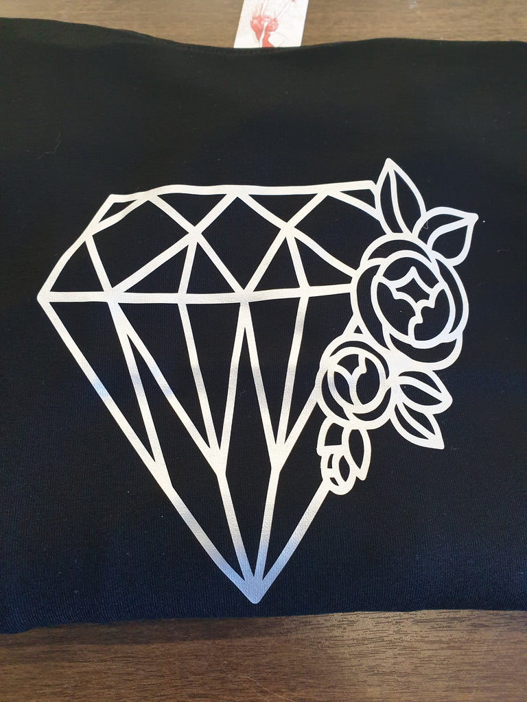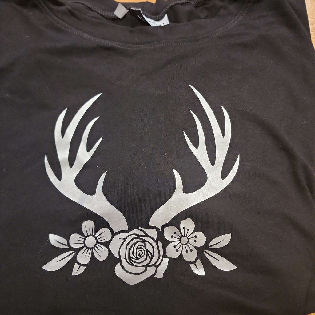 Fabric is Viscose / Spandex and the style in a slouchy fit on bust and tummy , then tapers into the hips. Black with Silver print. Approx Size, these are generous sized.