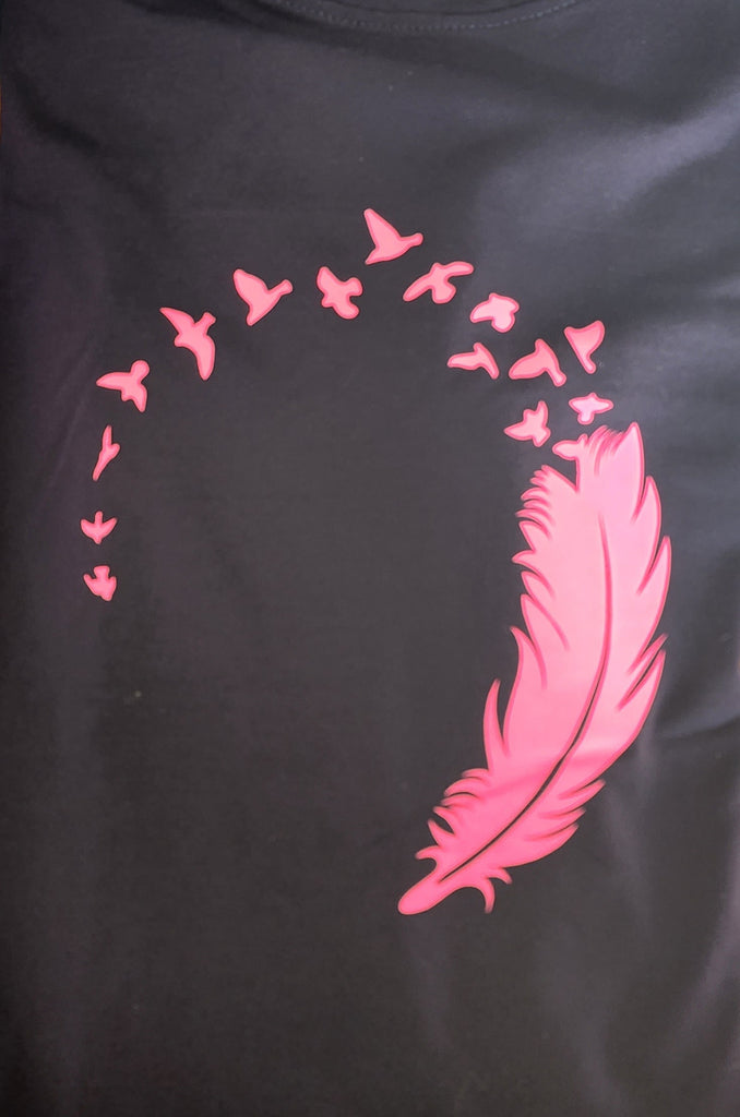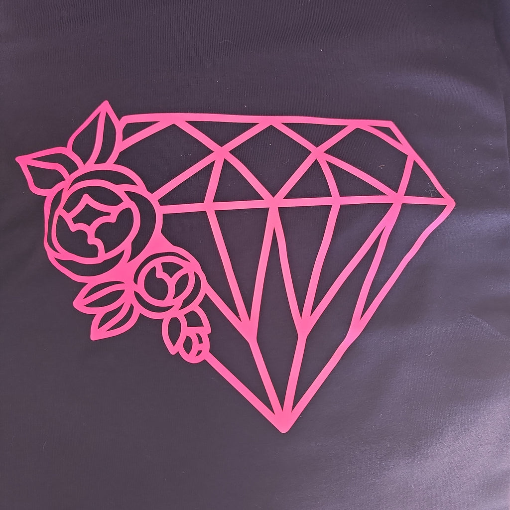 Vinyl Print Long Sleeve Stripe Tee - Navy & Pink